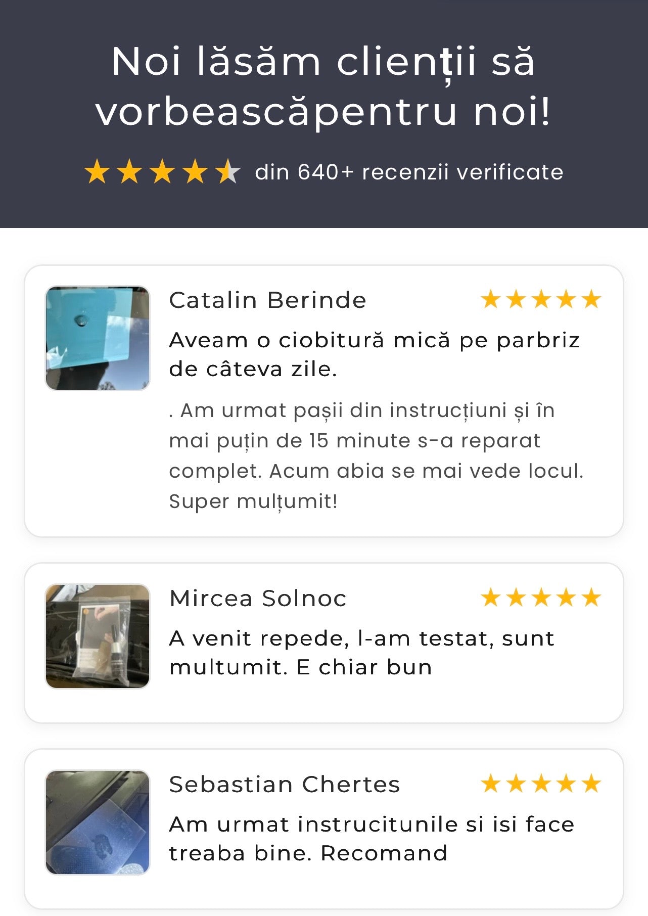 Alegerea șoferilor din toată țara – Cu FixGlass™ nu mai ai nevoie de service. Aplici soluția, urmezi pașii simpli din instrucțiuni, și în doar câteva minute fisura este reparată. Rapid, eficient și fără costuri inutile.